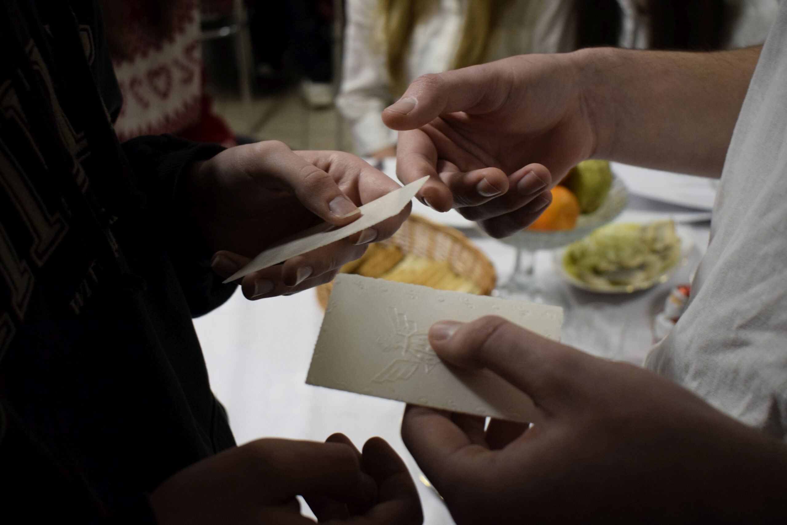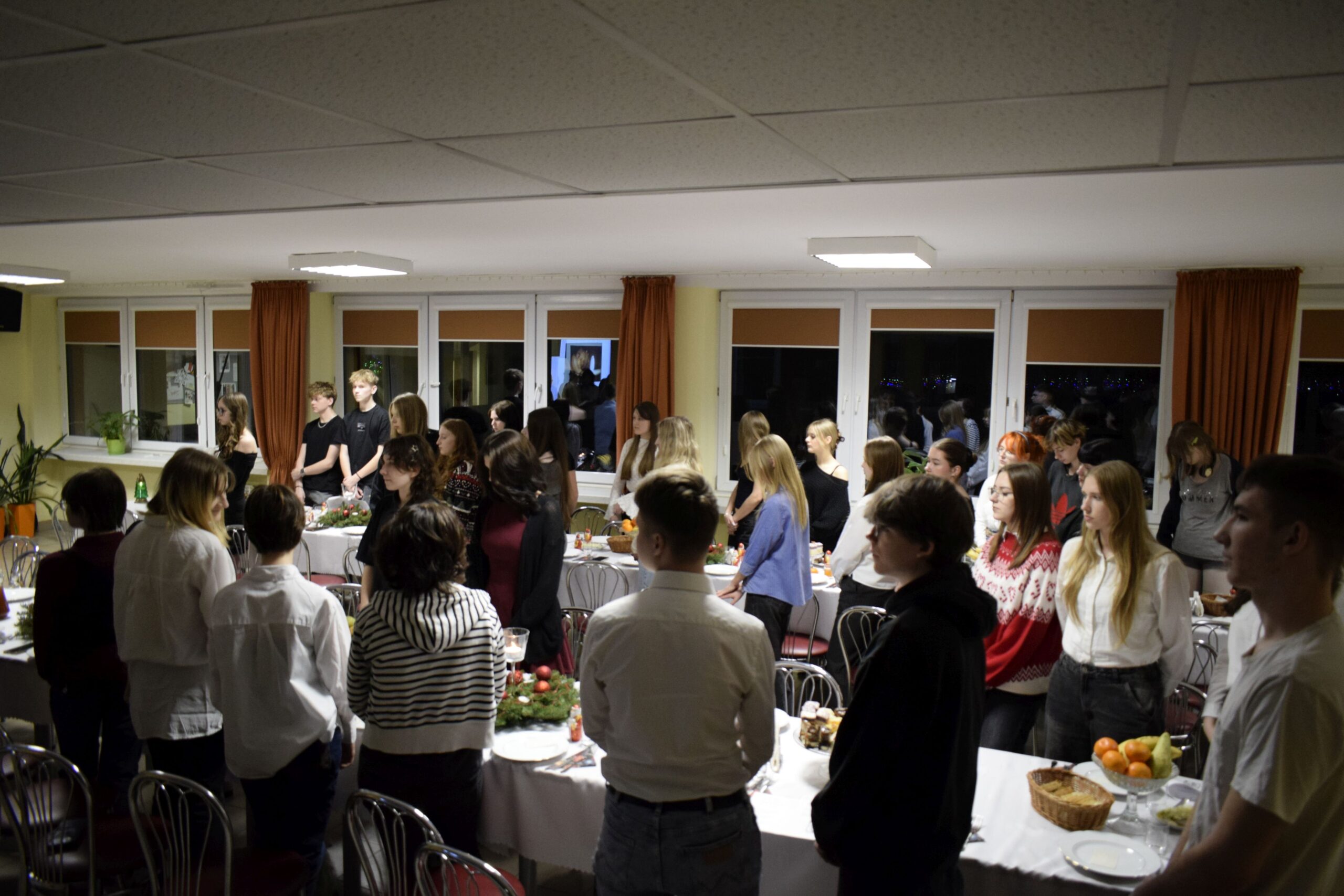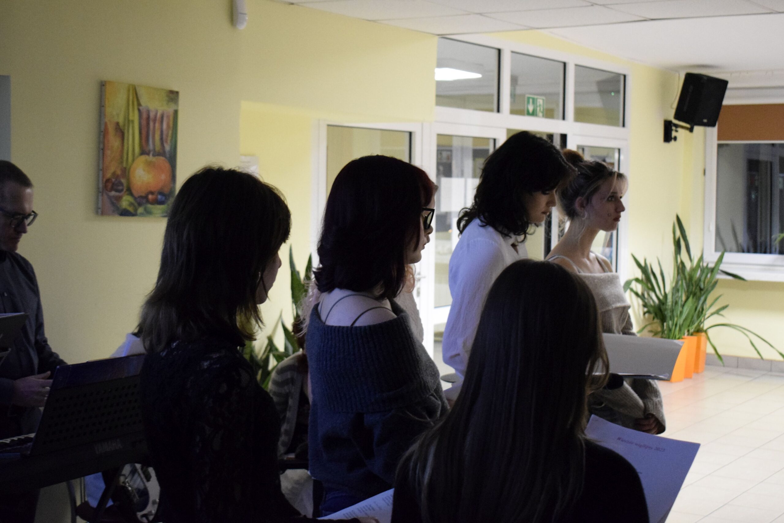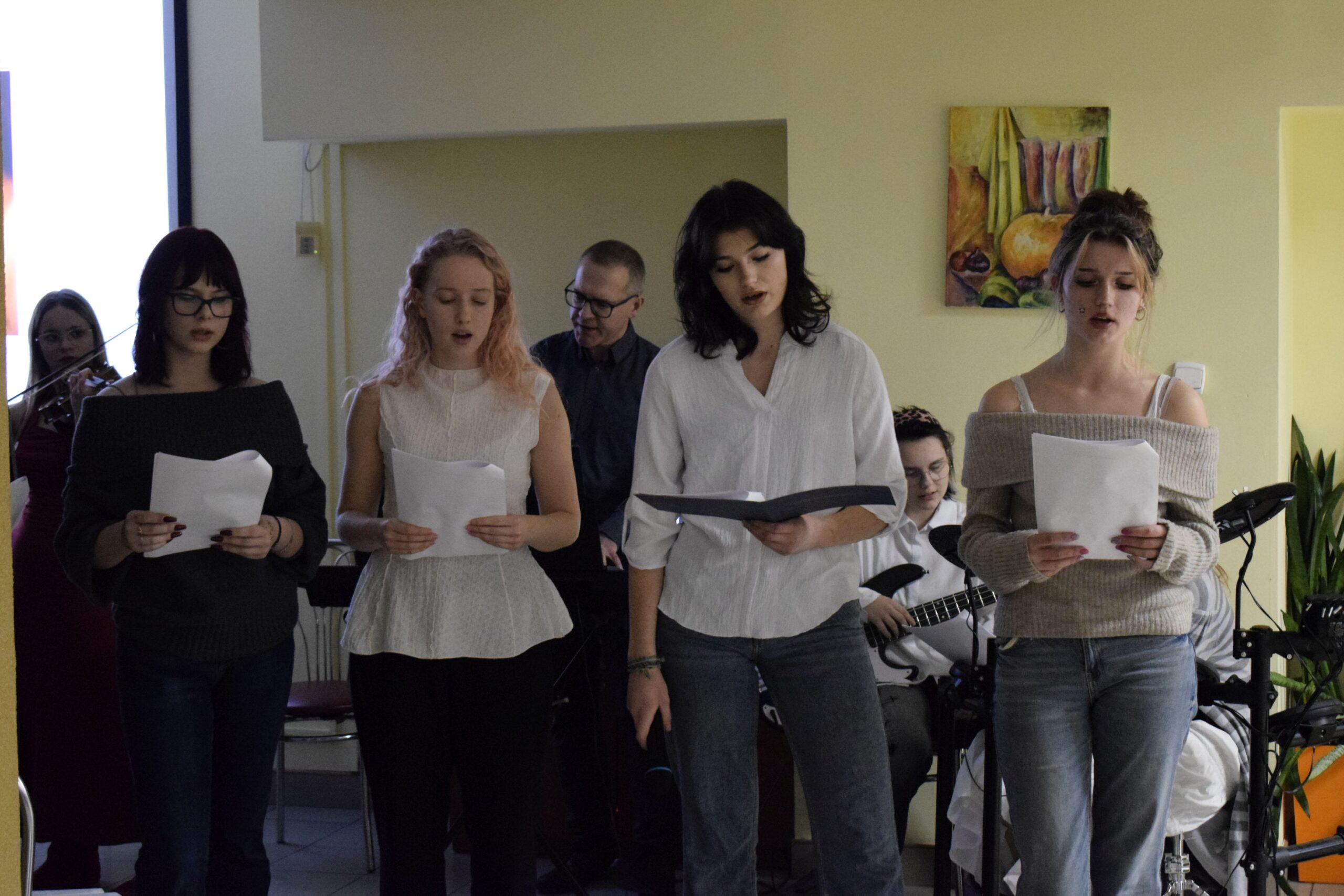 17 grudnia zgromadziliśmy się w naszej społeczności internackiej przy odświętnie przygotowanych stołach na tradycyjnym spotkaniu opłatkowym. Zwyczajem lat ubiegłych zanim wzięliśmy do rąk opłatek, by złożyć sobie nawzajem życzenia, wysłuchaliśmy występu artystycznego przygotowanego przez grupę naszych koleżanek pod kierunkiem p. Krzysztofa Trojana. Był to montaż słowno-muzyczny, w którym teksty prozy, poezji i rozważań Jana Pawła II przeplatały się ze śpiewem kolęd. Na tę okazję powstał zespół instrumentalny, w którego skład weszli: Natalia Dymowska (flet poprzeczny), Antonina Gałązka (gitara basowa), Nadia Kuć (perkusja elektroniczna), Natalia Mucha (skrzypce) i p. Krzysztof Trojan (pianino/organy). Zespół grał kolędy w różnych konfiguracjach instrumentalnych, kilkoro dziewcząt animowało śpiew, a wszyscy uczestnicy kolacji wigilijnej włączali się weń korzystając ze specjalnie przygotowanych na ten wieczór śpiewniczków. Na zakończenie słowa życzeń skierowała do nas p. dyrektor Elżbieta Wieczorek, która zawsze pamięta o nas i towarzyszy nam swoją obecnością w tym świątecznym okresie.