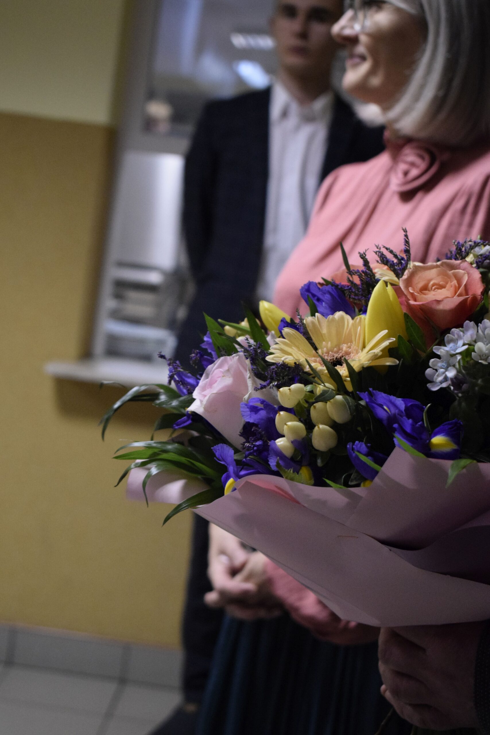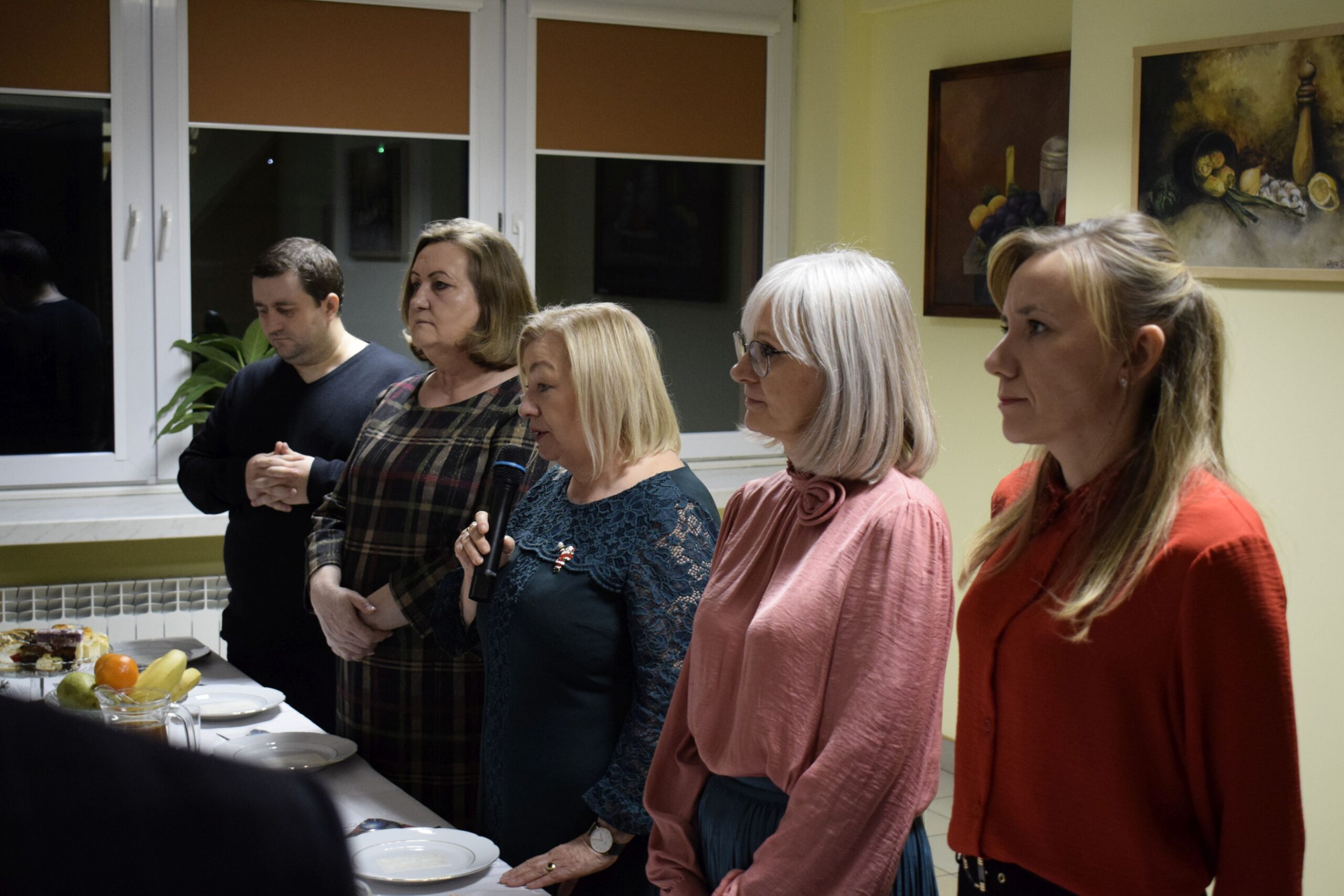 Po tej krótkiej uczcie duchowej przyszedł czas na ucztę kulinarną. Panie kucharki jak zawsze spisały się na medal i na stołach nie zabrakło tradycyjnych wigilijnych potraw, a do tego pysznych ciast. Podczas kolacji był też moment pożegnania. Ze smutkiem pożegnaliśmy odchodzącą od nas p. Katarzynę Kowalską, pełniącą zadania nauczyciela wychowawcy. Słowa podziękowania do p. Kasi skierowała p. kierownik Ewa Ambrożewicz.
