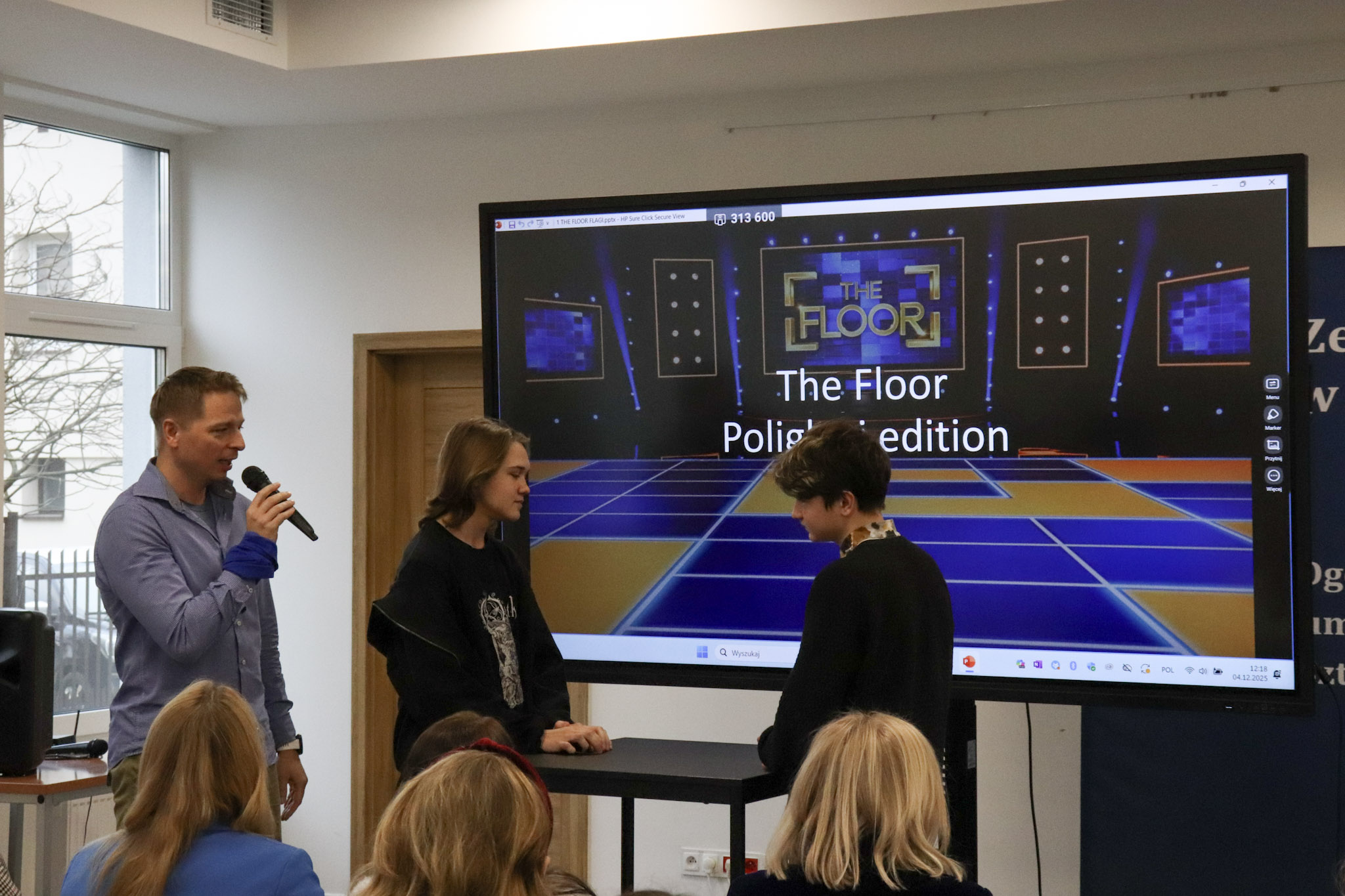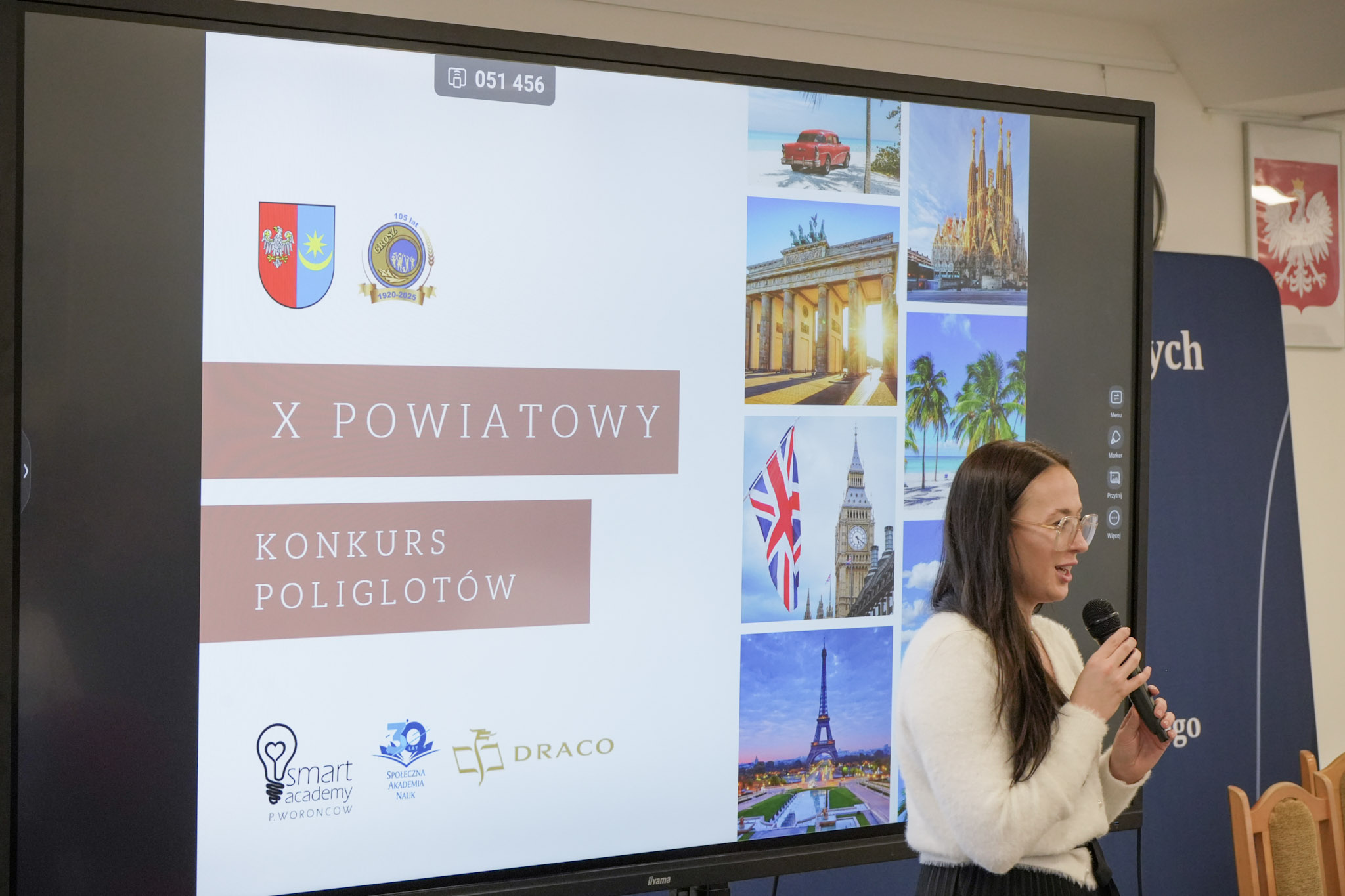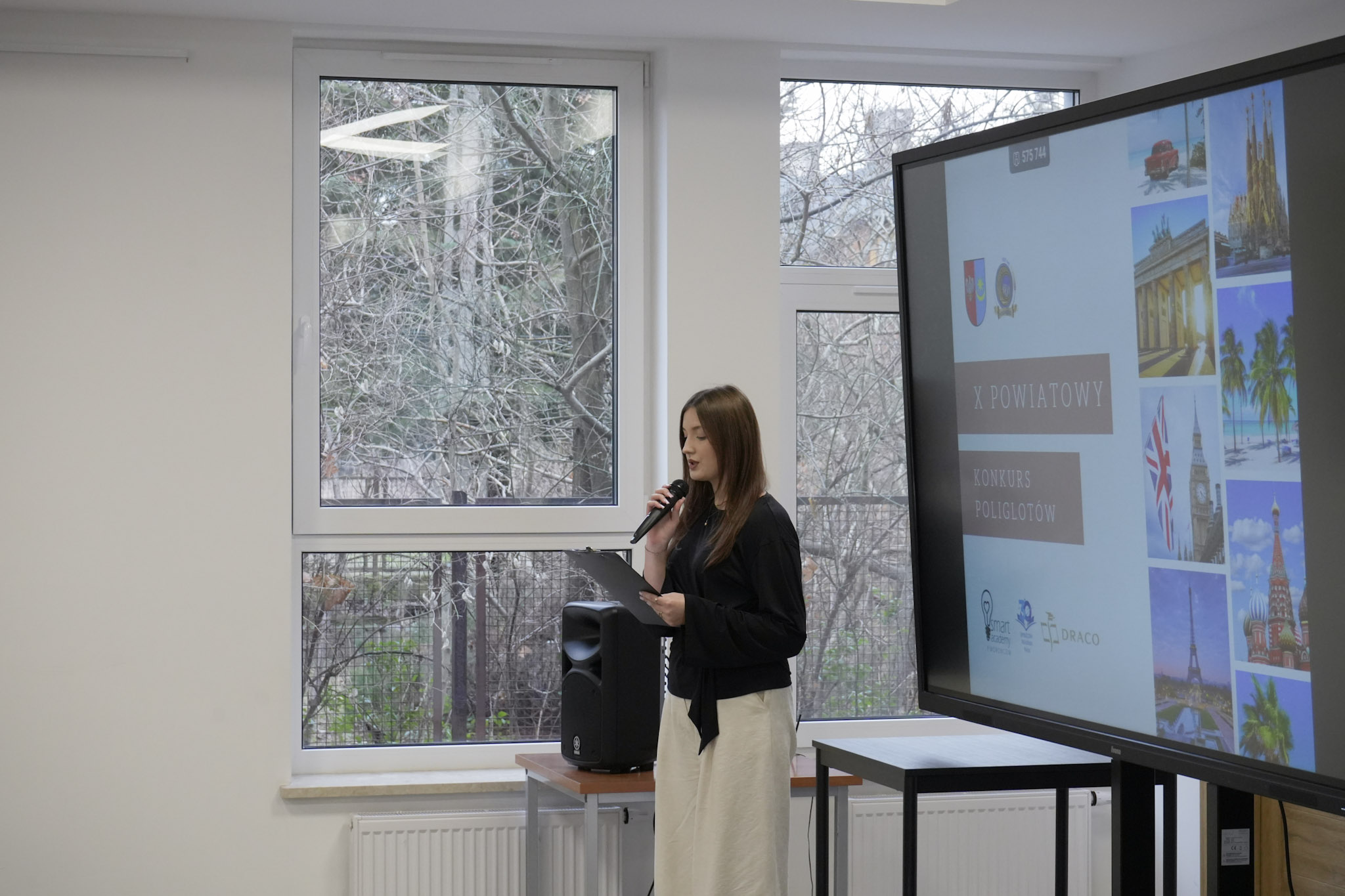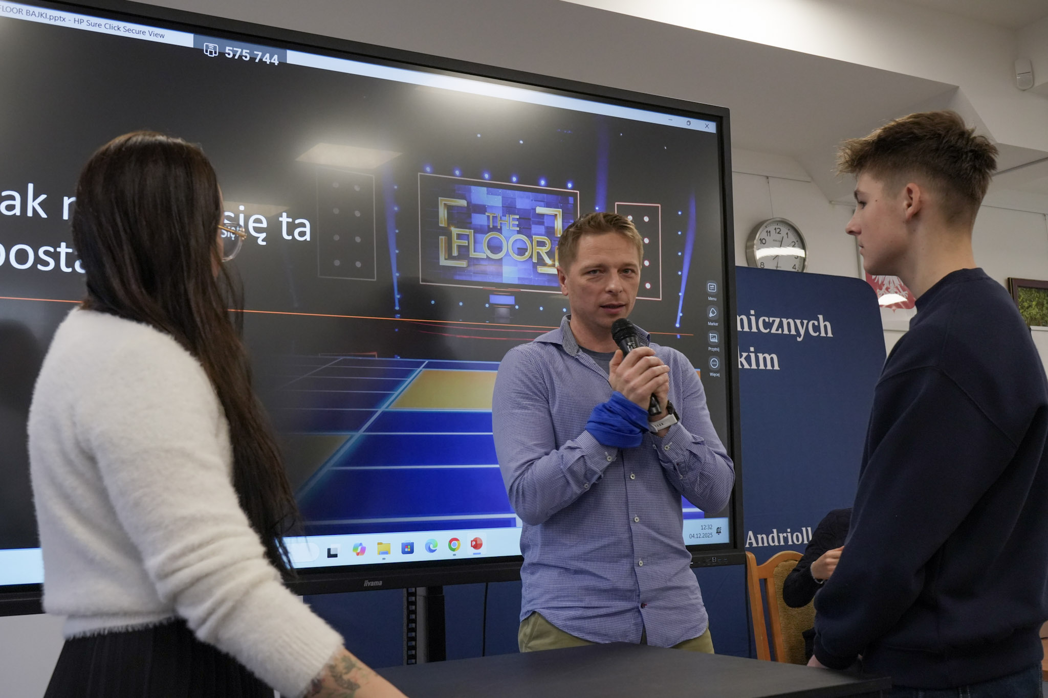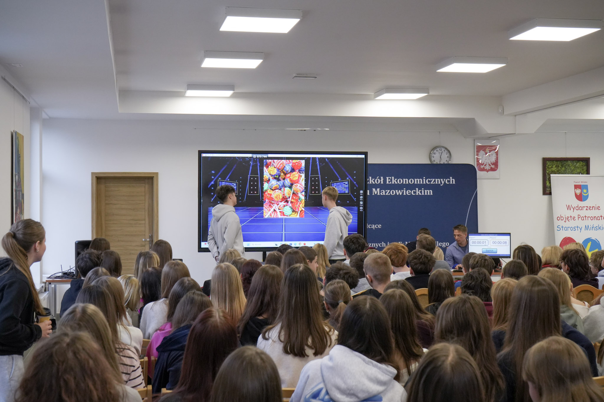 Podsumowanie X Powiatowego Konkursu Poliglotów zostało przygotowane przez uczniów klasy 1D i klasy 3F1 Zespołu Szkół Ekonomicznych, a wydarzenie poprowadziła Wiktoria Sęktas z klasy 4C. Najważniejszym punktem programu była gra „The Floor”, w której wylosowani przez „podłogę” uczniowie rywalizowali w pięciu kategoriach: flagi, postacie z bajek, Boże Narodzenie, jaki to kraj oraz język angielski. Zmagania dostarczyły wiele emocji i świetnej zabawy zarówno uczestnikom, jak i publiczności.