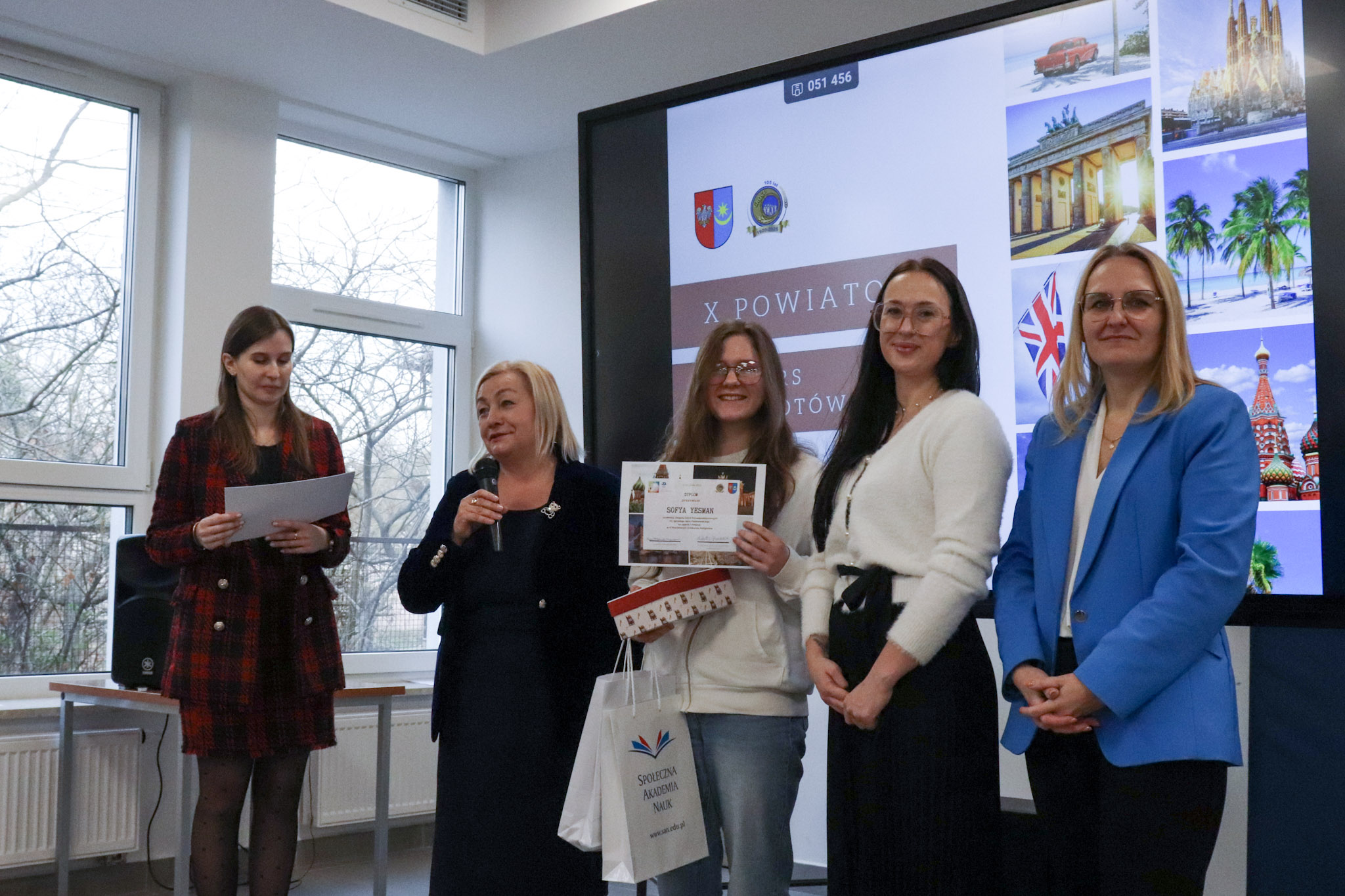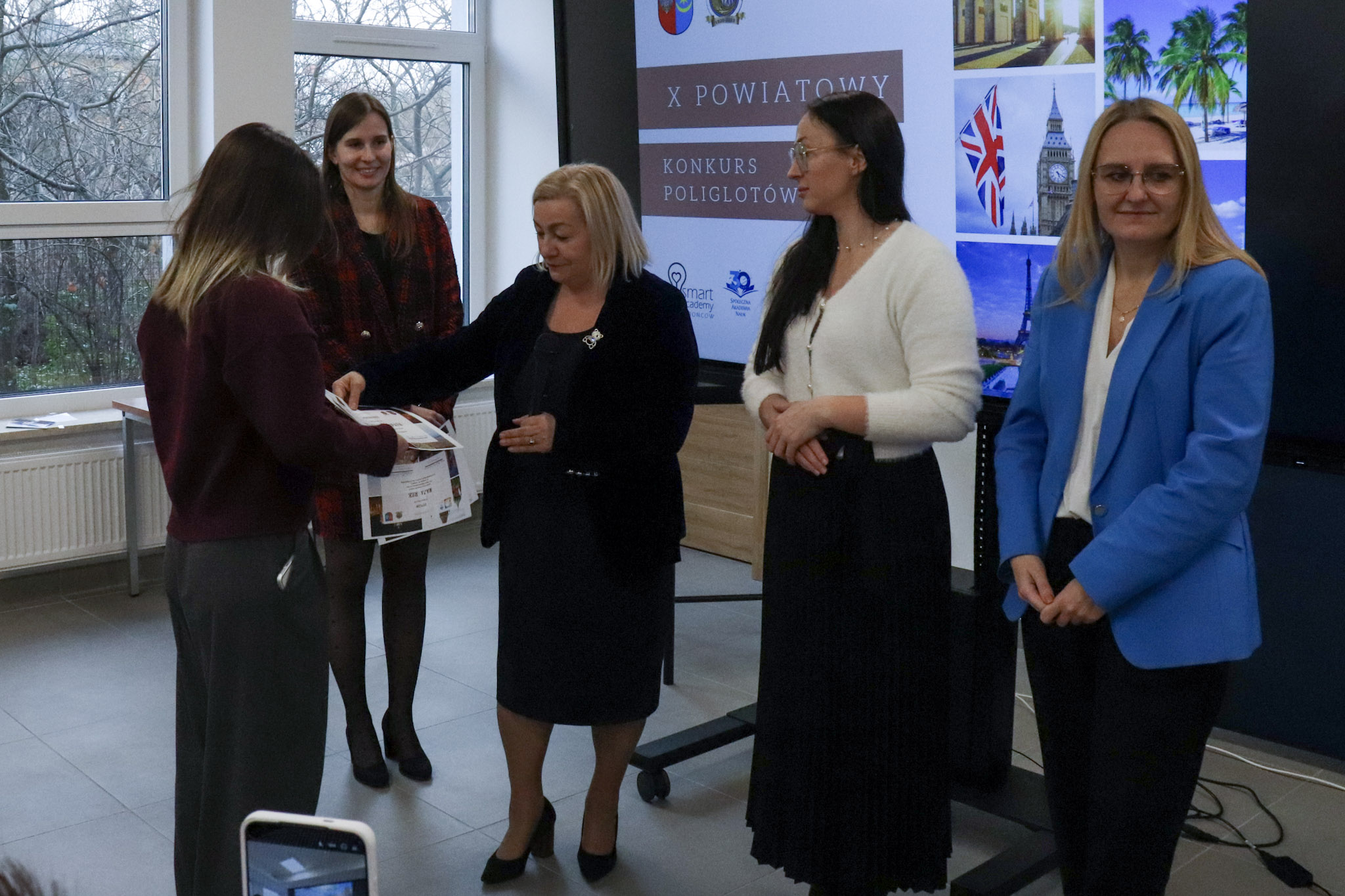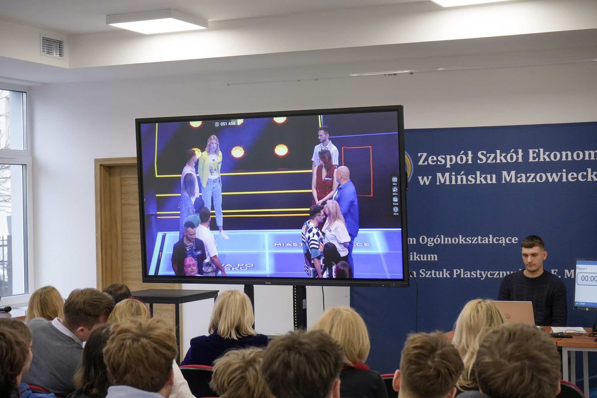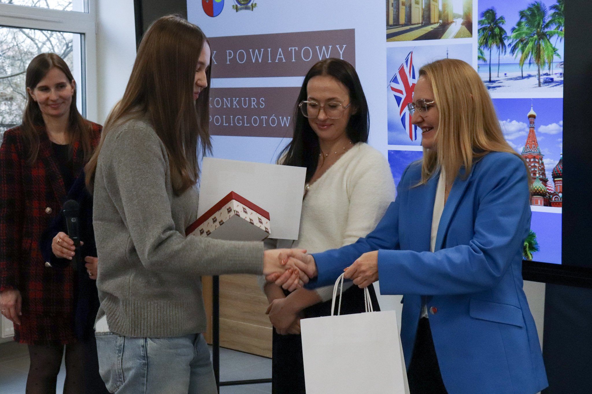 Podsumowanie X Powiatowego Konkursu Poliglotów zostało przygotowane przez uczniów klasy 1D i klasy 3F1 Zespołu Szkół Ekonomicznych, a wydarzenie poprowadziła Wiktoria Sęktas z klasy 4C. Najważniejszym punktem programu była gra „The Floor”, w której wylosowani przez „podłogę” uczniowie rywalizowali w pięciu kategoriach: flagi, postacie z bajek, Boże Narodzenie, jaki to kraj oraz język angielski. Zmagania dostarczyły wiele emocji i świetnej zabawy zarówno uczestnikom, jak i publiczności.