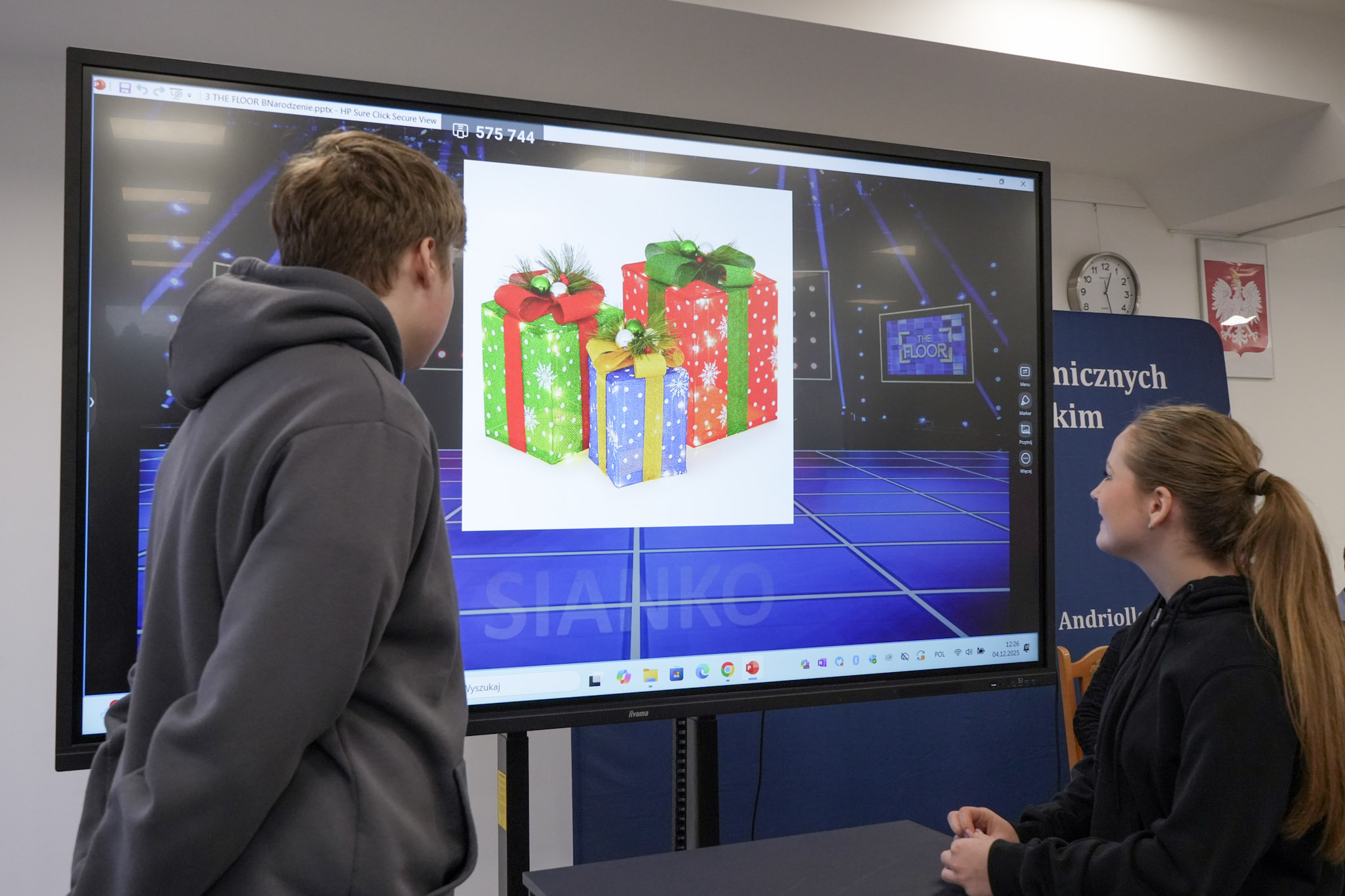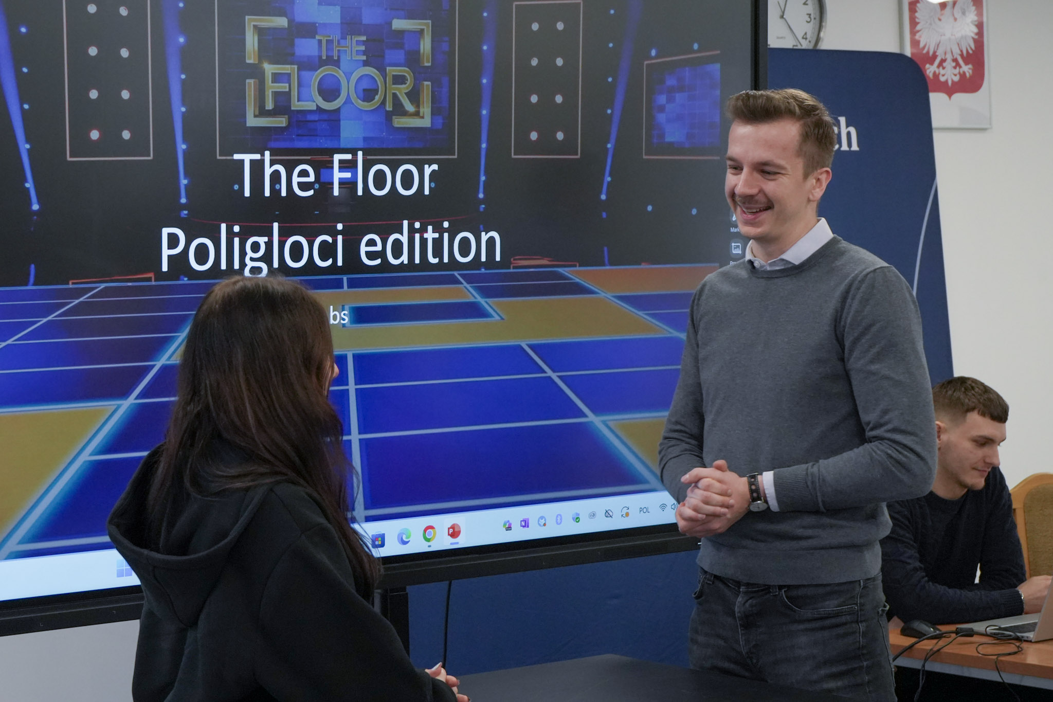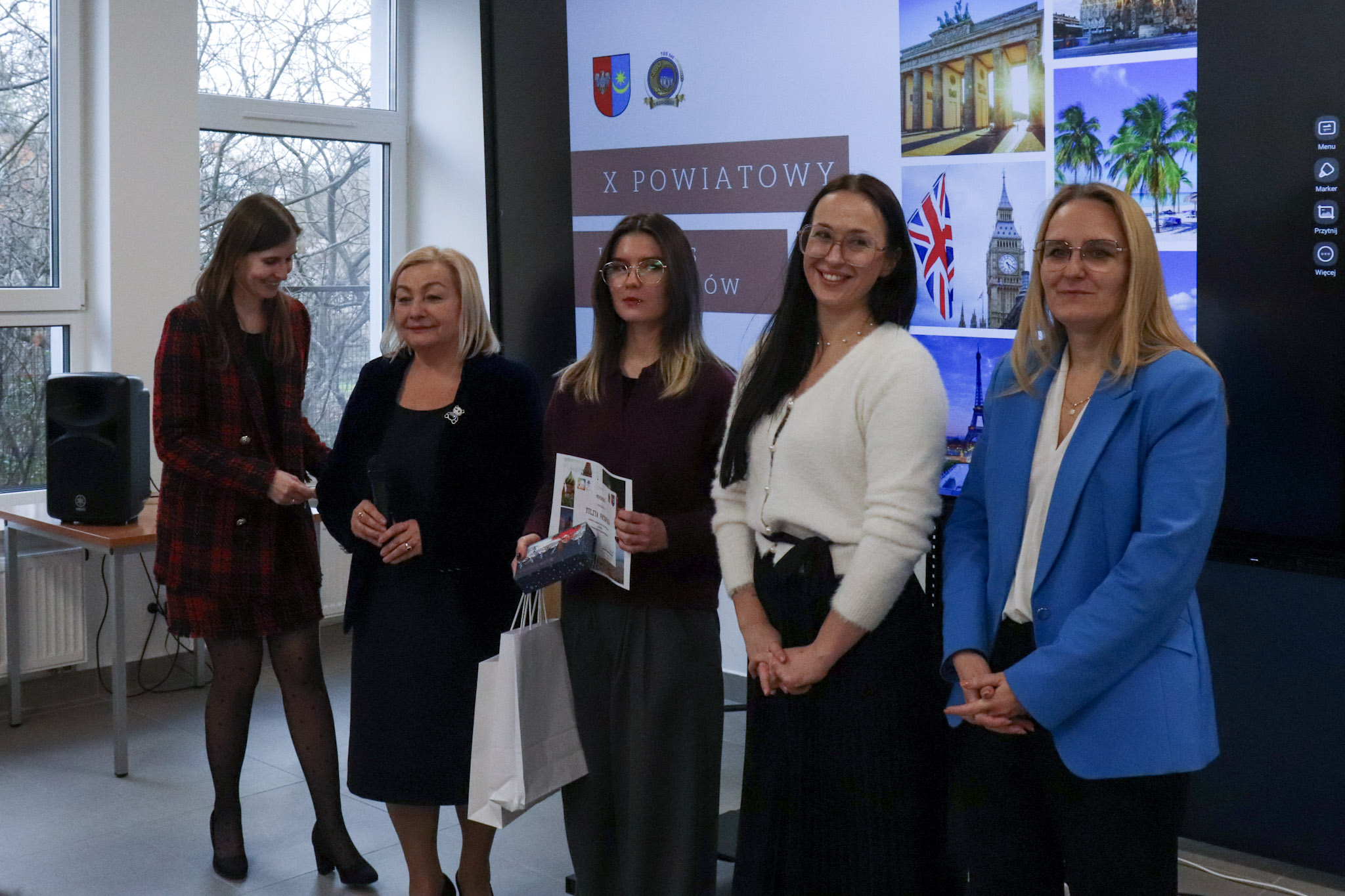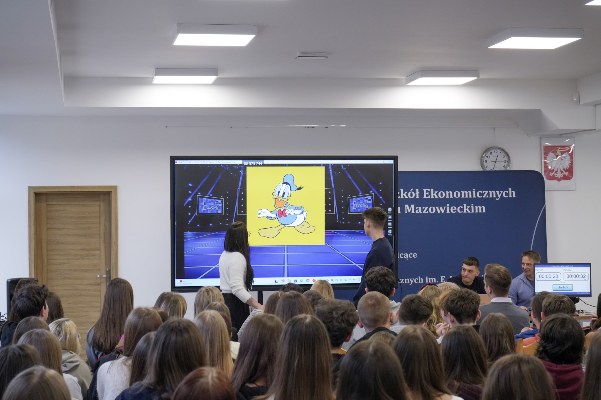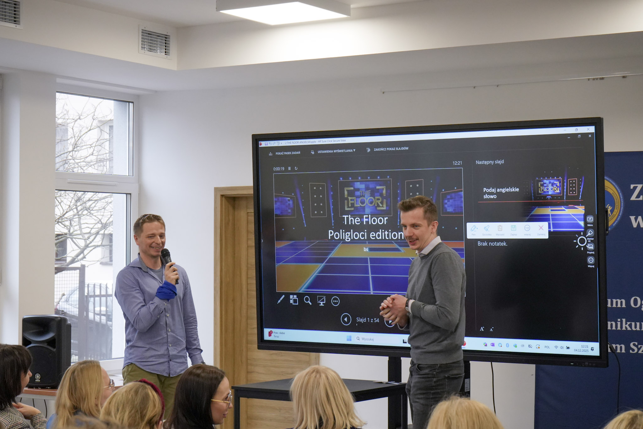 Podsumowanie X Powiatowego Konkursu Poliglotów zostało przygotowane przez uczniów klasy 1D i klasy 3F1 Zespołu Szkół Ekonomicznych, a wydarzenie poprowadziła Wiktoria Sęktas z klasy 4C. Najważniejszym punktem programu była gra „The Floor”, w której wylosowani przez „podłogę” uczniowie rywalizowali w pięciu kategoriach: flagi, postacie z bajek, Boże Narodzenie, jaki to kraj oraz język angielski. Zmagania dostarczyły wiele emocji i świetnej zabawy zarówno uczestnikom, jak i publiczności.