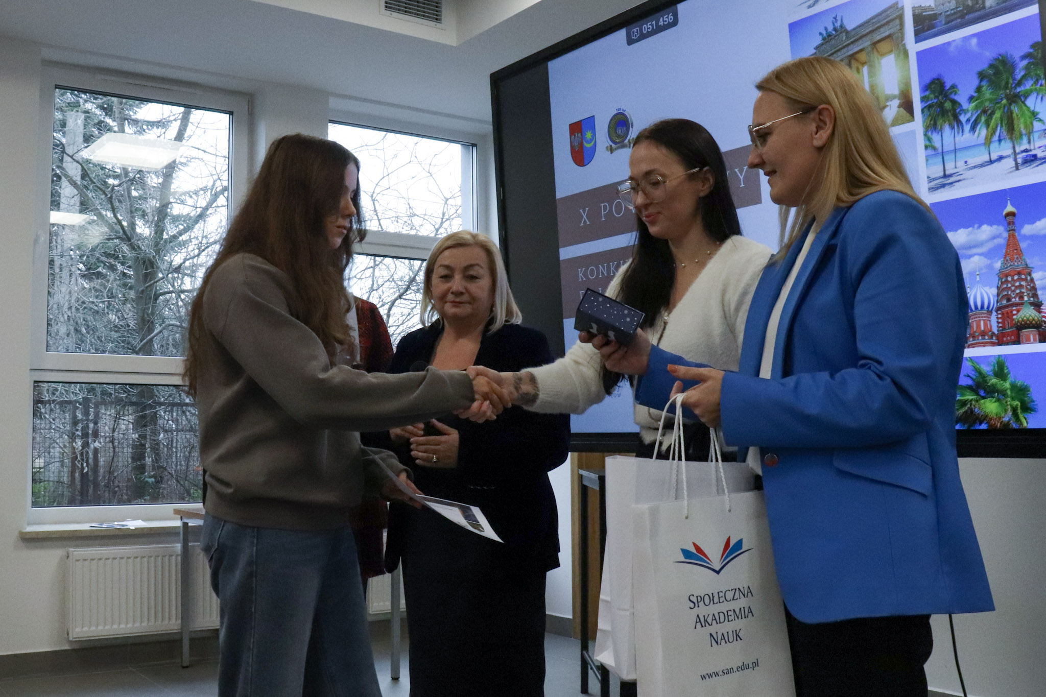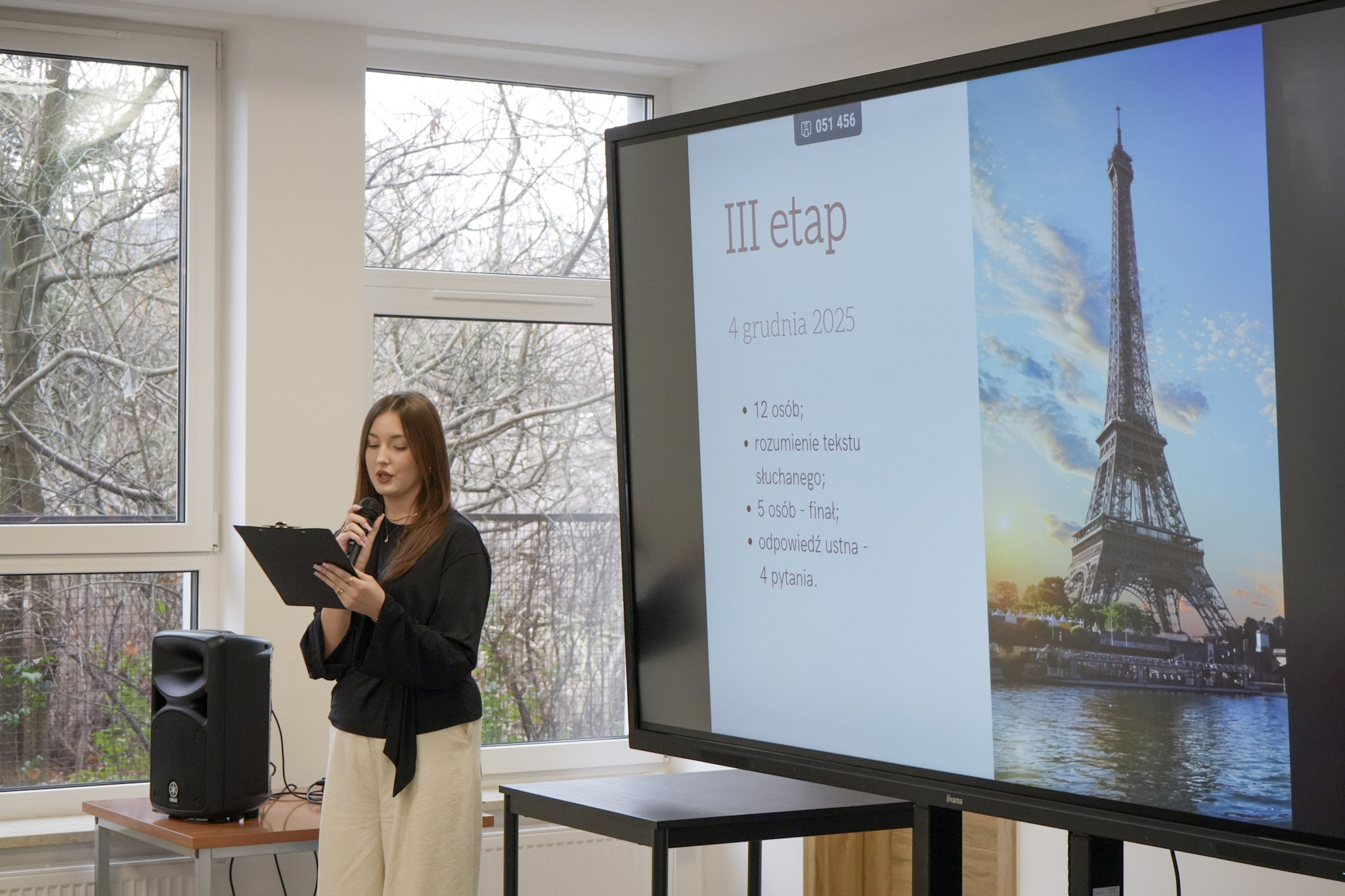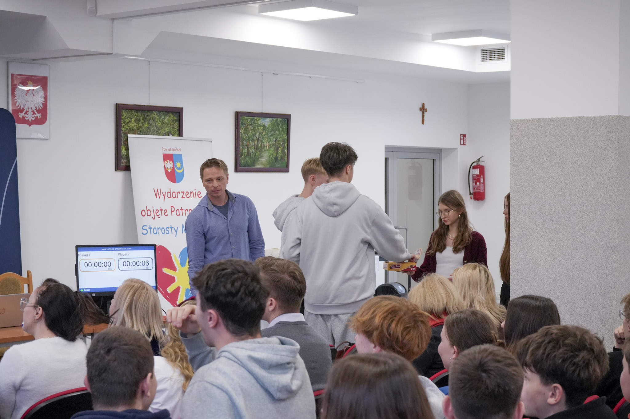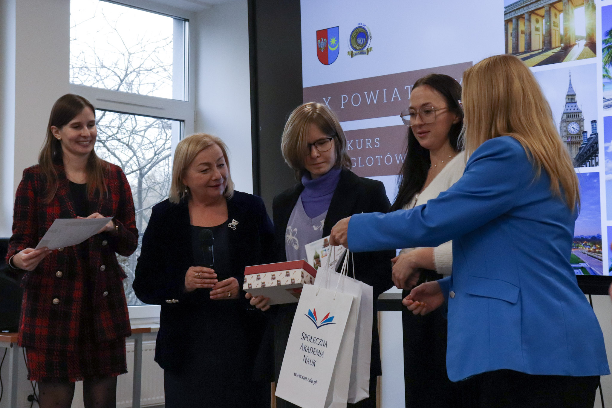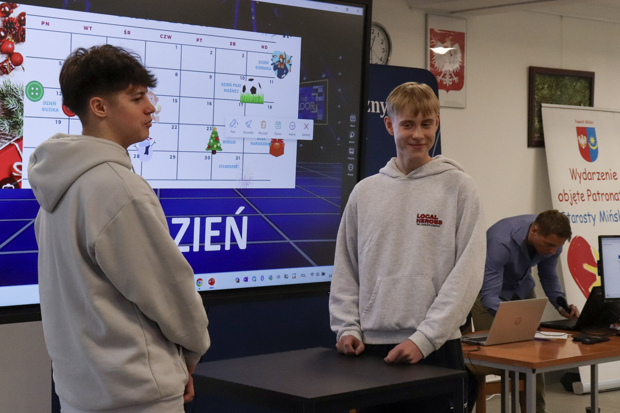 Podsumowanie X Powiatowego Konkursu Poliglotów zostało przygotowane przez uczniów klasy 1D i klasy 3F1 Zespołu Szkół Ekonomicznych, a wydarzenie poprowadziła Wiktoria Sęktas z klasy 4C. Najważniejszym punktem programu była gra „The Floor”, w której wylosowani przez „podłogę” uczniowie rywalizowali w pięciu kategoriach: flagi, postacie z bajek, Boże Narodzenie, jaki to kraj oraz język angielski. Zmagania dostarczyły wiele emocji i świetnej zabawy zarówno uczestnikom, jak i publiczności.